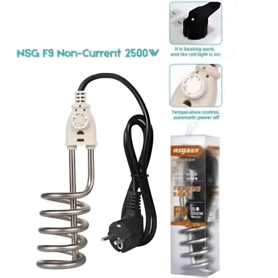 The NSG F9 Electric Heating Rod is a powerful and reliable immersion water heater designed for quick heating in buckets, tubs, and containers. With a 2500W silver coil and automatic temperature control, it ensures fast and safe heating without the need for gas or geysers. Its shock-proof body, long power cord, and auto shut-off feature make it ideal for daily use in homes, hostels, workshops, and travel. Just dip it in water, plug it in, and enjoy efficient heating in minutes.